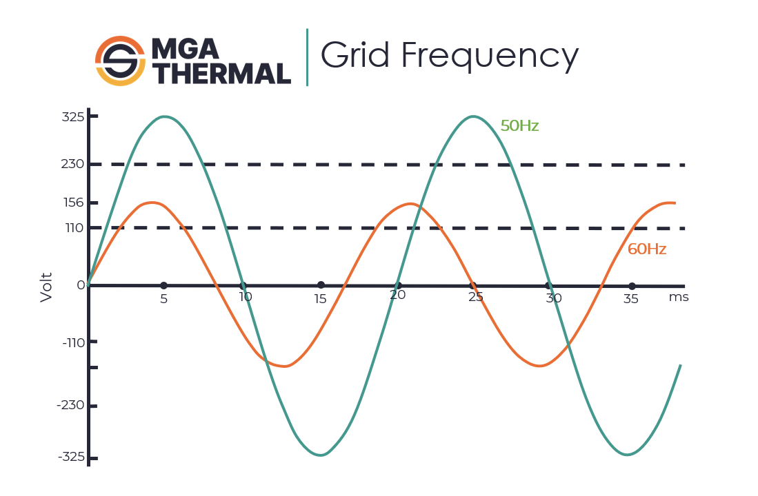 The frequency in the grid was set historically as the speed of the turbine and alternator of synchronous generators. You can see that the spinning inertia of a synchronous generator will keep the generated power at a consistent frequency. Globally, the frequency in each country is either set at 50 Hz or 60 Hz; the grid in Australia is kept at a constant frequency of 50 Hz, whereas the grid in the USA is set at 60 Hz.